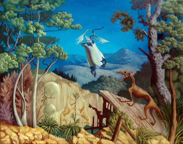 Thylacine and the Angel oil on canvas 40.6cm x 50.8cm