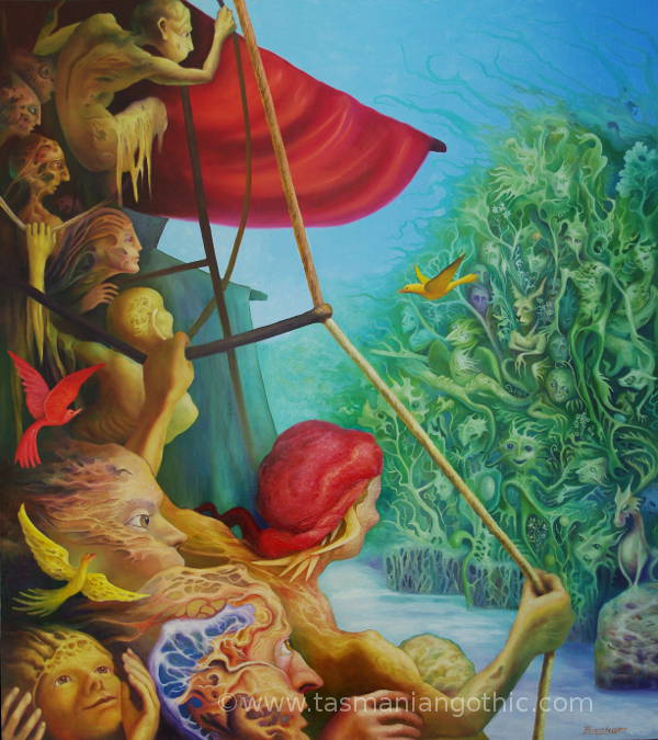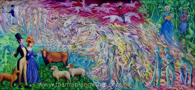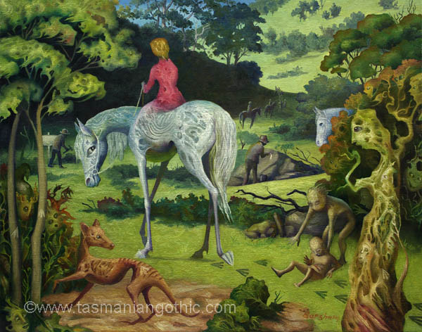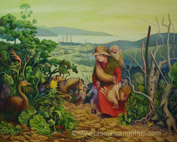 Understory - Off to Exploit the AntipodesGALLERY ONE GALLERY TWO GALLERY THREE GALLERY FOUR GALLERY FIVE GALLERY SIX an exhibition at Nolan Gallery, Salamanca Arts Centre, Hobart. November 2021. more information about the images Off to Exploit the Antipodes - booklet ![]() OFF TO EXPLOIT THE ANTIPODESIn this glossy A5 size eight-page booklet you will find reproductions of all eight paintings accompanied by a thoughtful, poetic essay by Tasmanian Aboriginal artist Jen Wagner. Only $10.00 (including postage within Australia) Perfect stocking-filler for Christmas! Order through Paypal or Also available at Nolan Art Gallery, 1st floor, Salamanca Arts Centre, Hobart. Art, Life and History - Elizabeth Barsham's blogsTASMANIAN GOTHIC BLOG DIGGING AROUND IN HISTORY THE TRAVEL DIARIES OF EDWARD WALLACE All content on this website © E.M. Christensen contact the artist: barsham@tasmanian-gothic.com |
